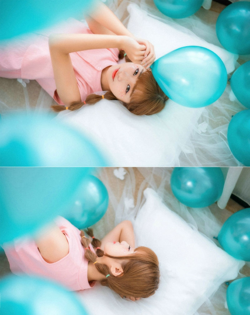 粉嫩双马尾妹子气球童真可人-套图吧