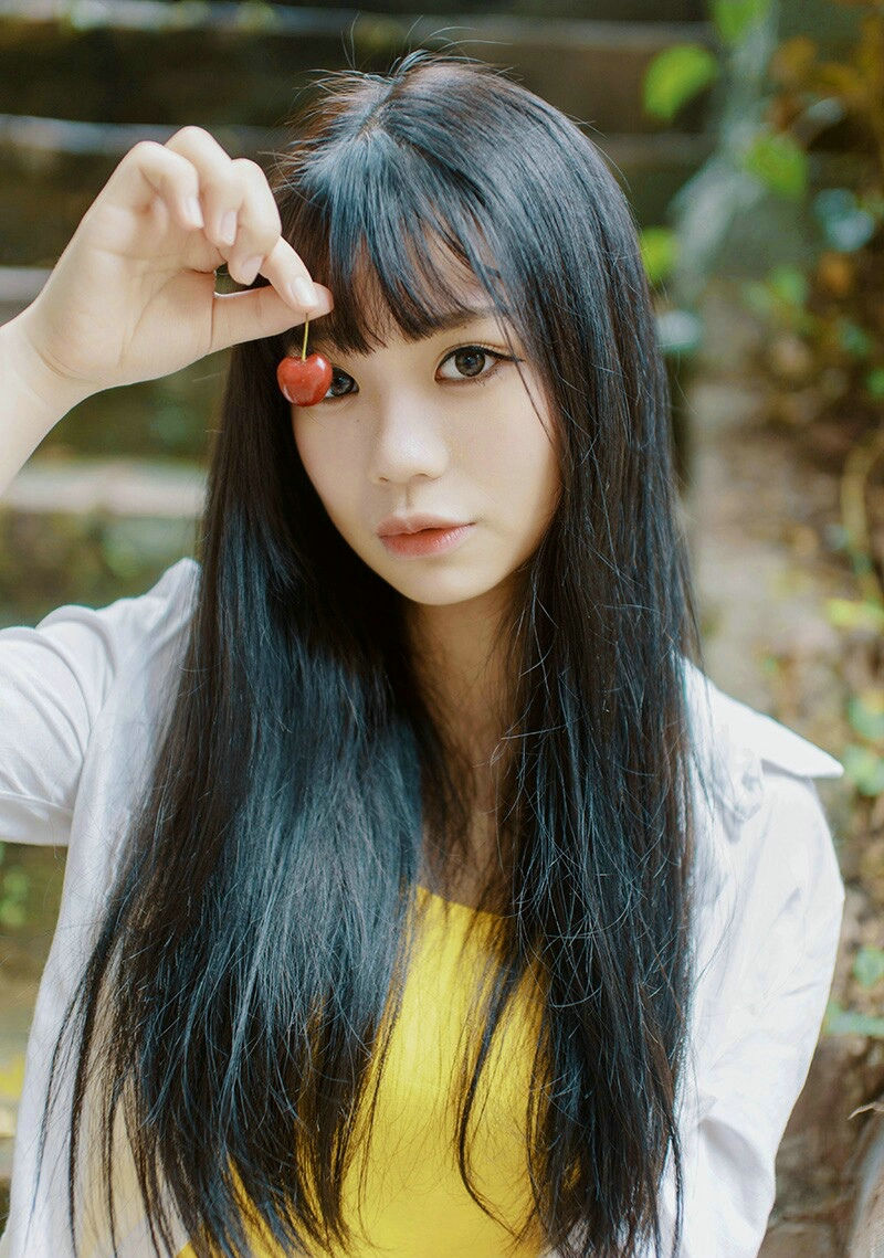 齐刘海樱桃少女清新户外纯真迷人