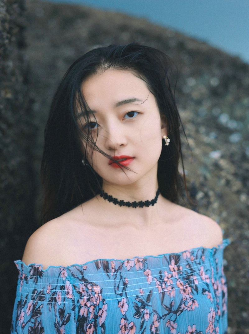 海边一字肩湿发气质美女娇艳迷人