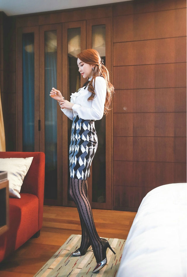 酒店内灯光下淑女装美女模特气质纯净柔美-套图吧