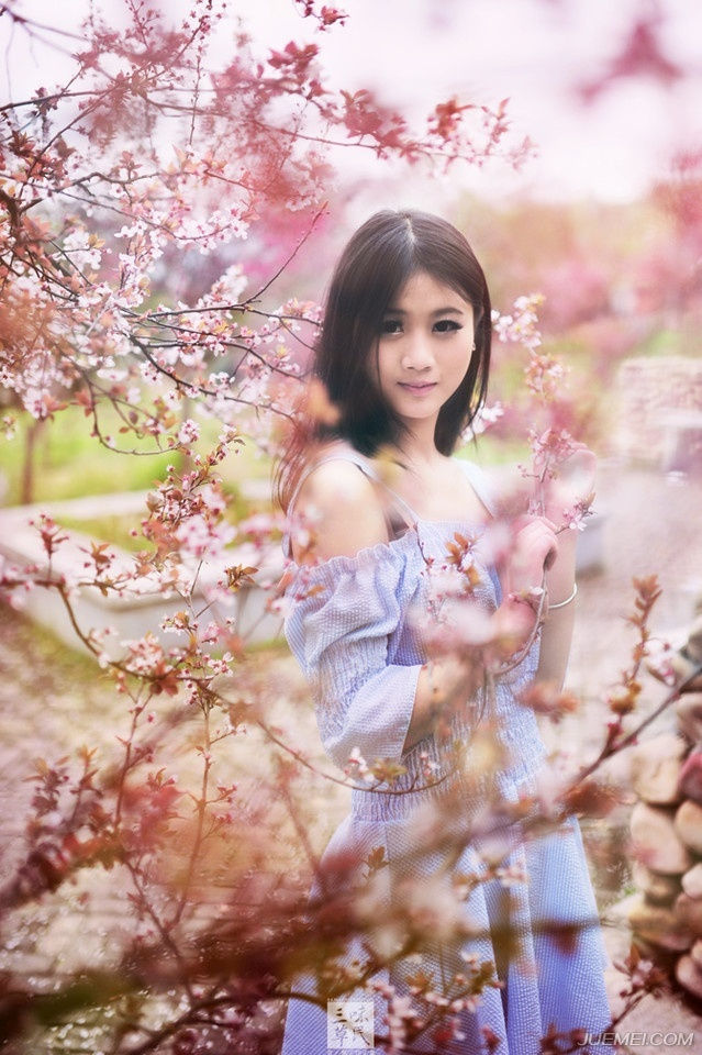 桃花树下的甜美少女粉嫩温馨感受大自然的气息-套图吧