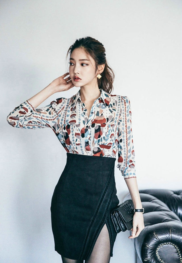 厚嘴唇美女模特半身裙性感优雅眼睛会说话-套图吧