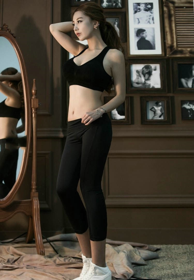 镜子前的健身美女穿运动鞋焕发年轻的朝气-套图吧