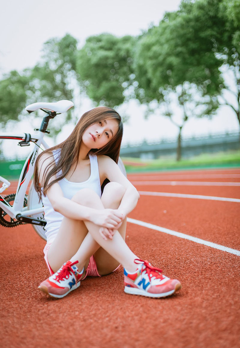 清新夏日跑道场上的单车少女清纯写真-套图吧