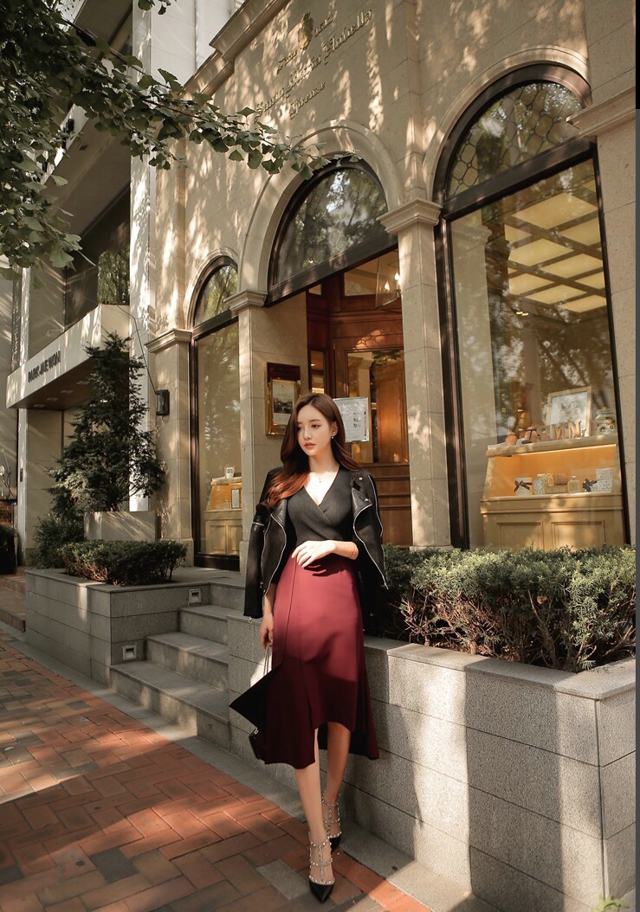 街头美女模特高腰裙搭皮衣酷范长腿抢镜-套图吧