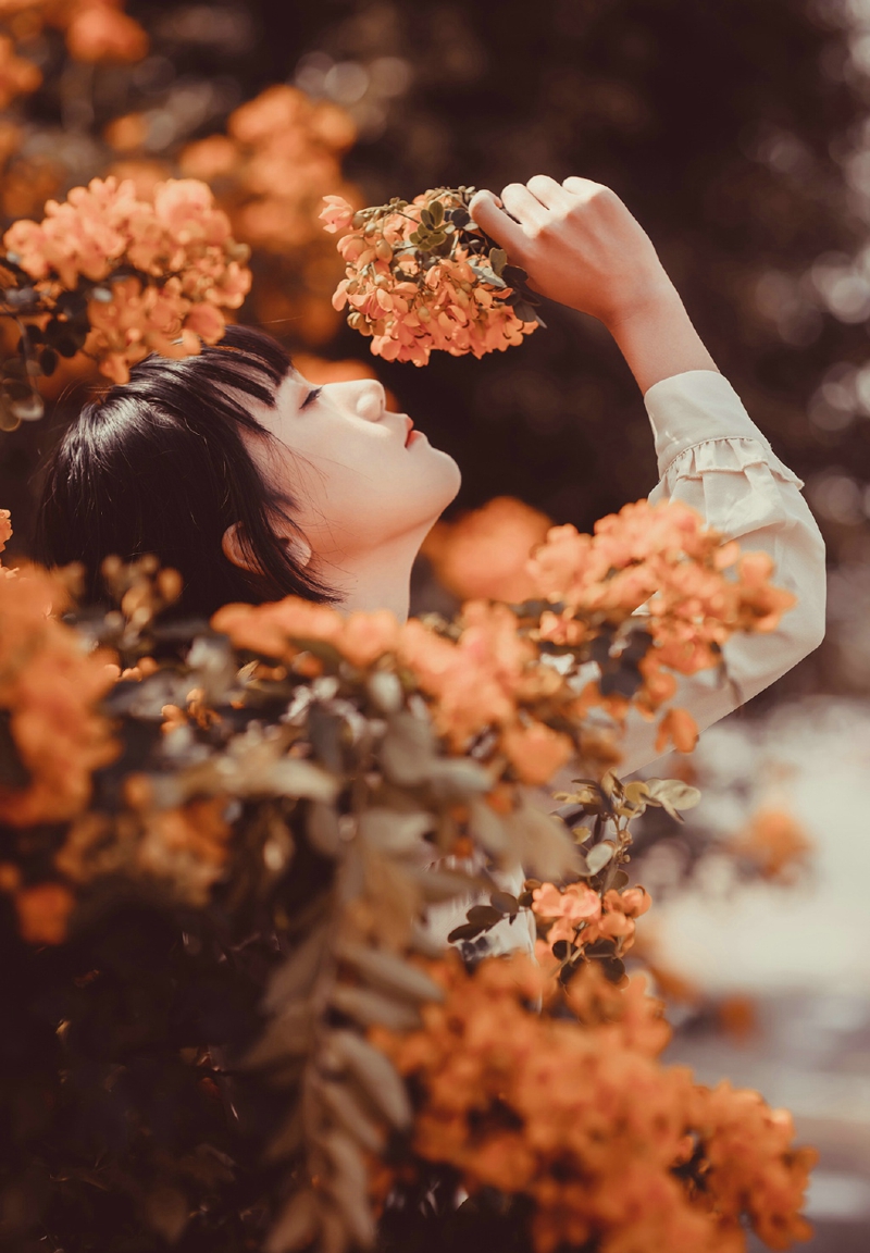 花海中的齐刘海妹子安静花容月貌