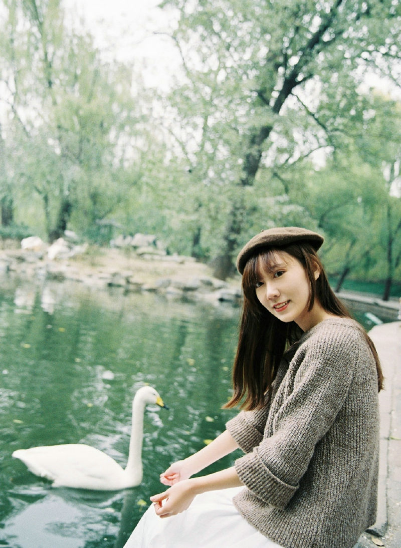 温暖秋日内的贝雷帽气质美女笑容迷人-套图吧