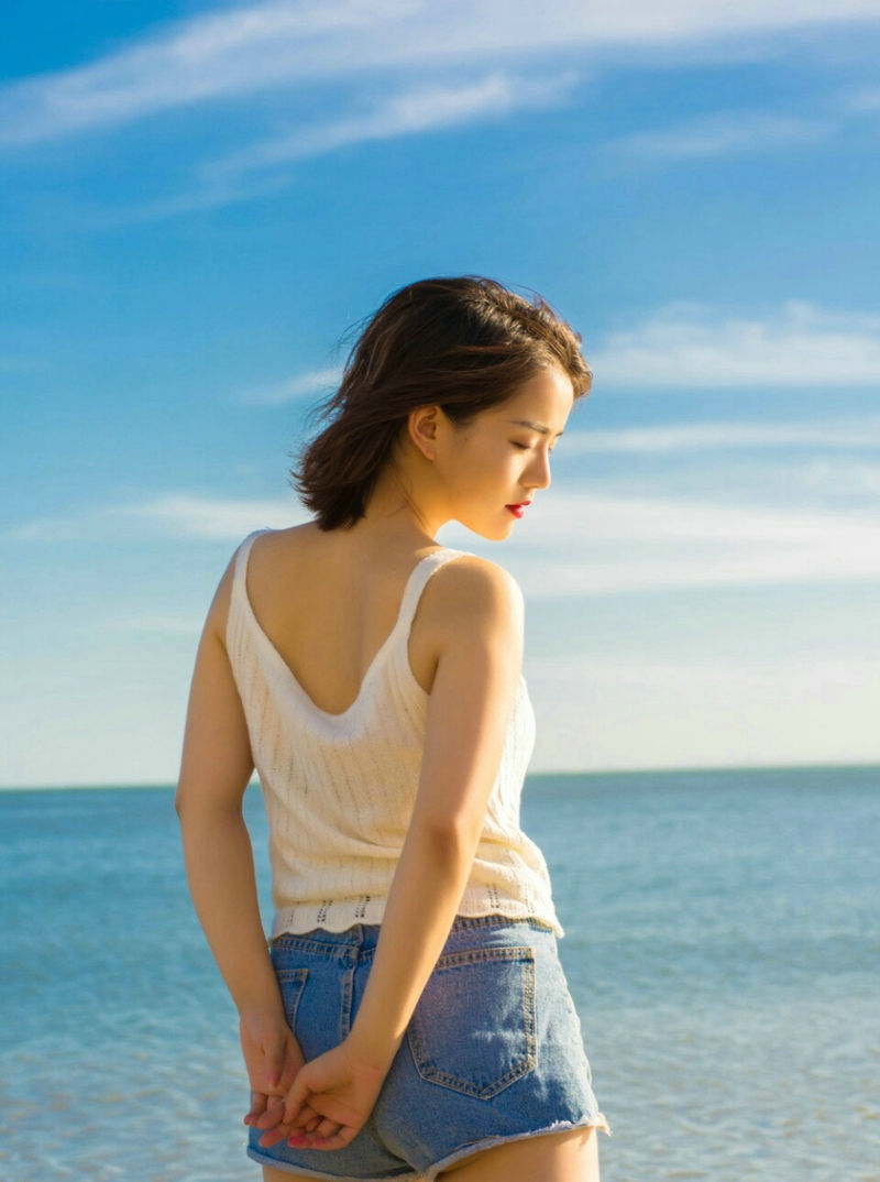 海边高颜值美美女背心牛仔裤养眼动人写真-套图吧