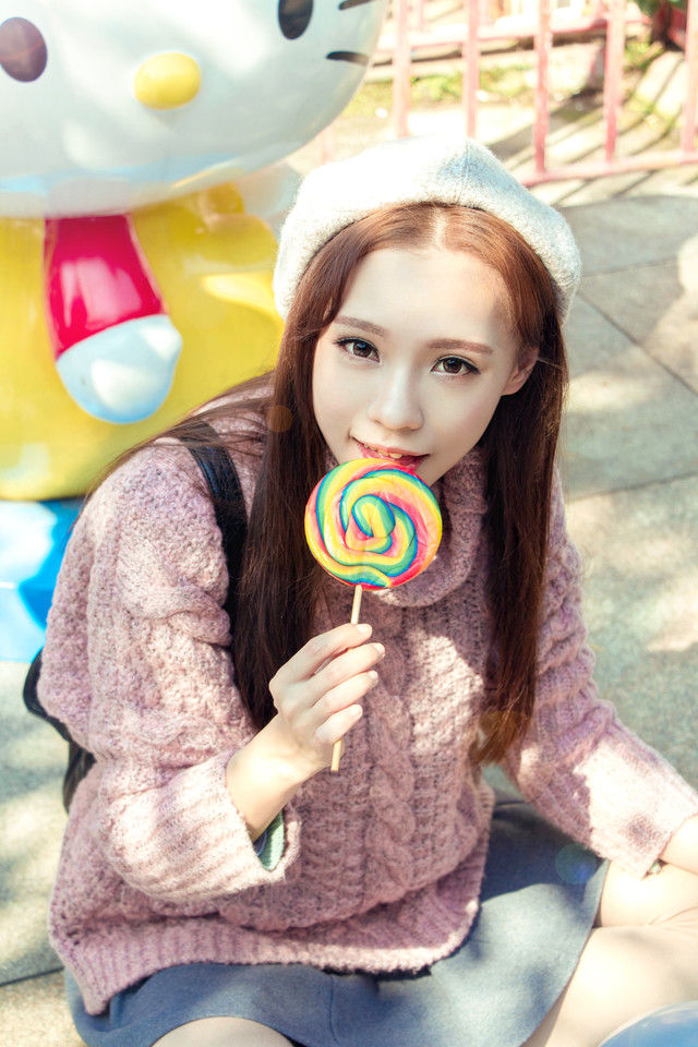 虎牙美女游乐园内尽情玩耍写真俏皮