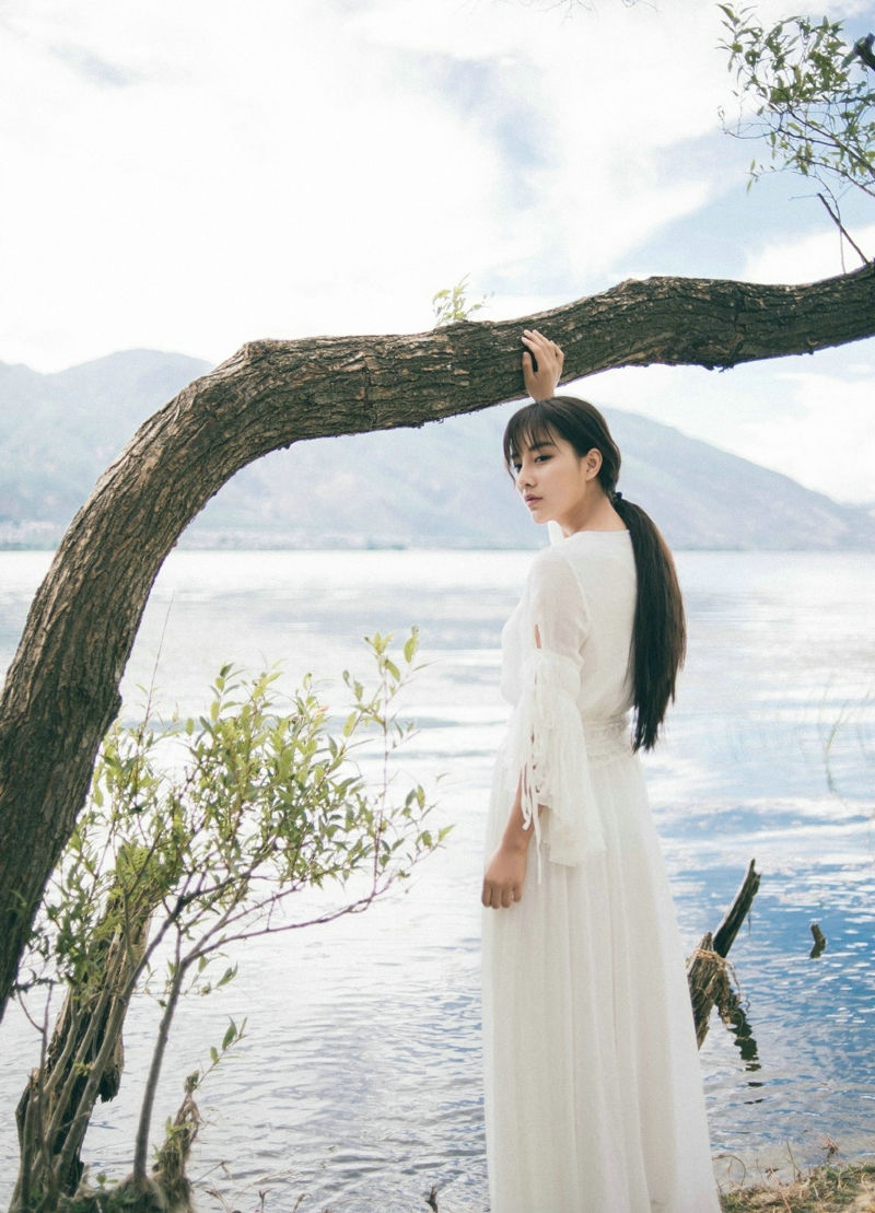 温柔白裙美女湖边淡雅气质美女安静怡人写真-套图吧
