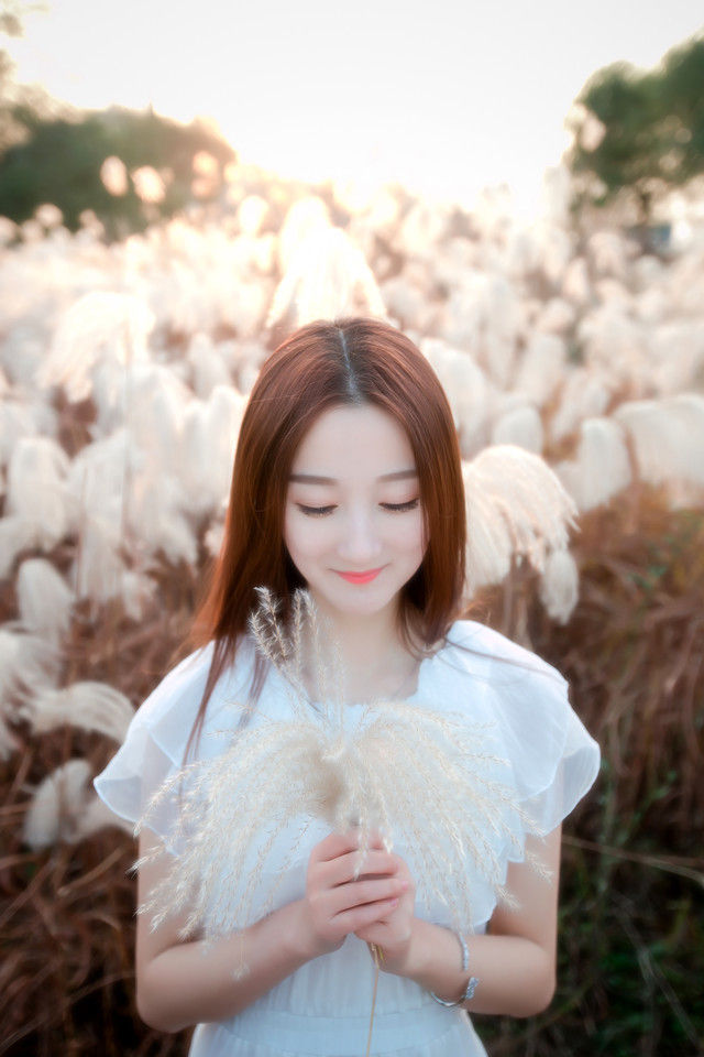 在芦苇中的气质美女白纱裙如诗一般的美丽-套图吧