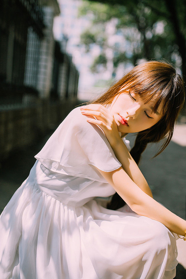 初秋麻花辫少女修身白裙唯美浪漫-套图吧