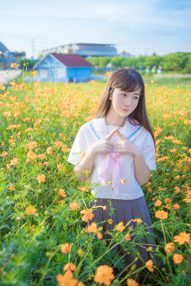 清新唯美小女生花丛写真嬉戏柔美-套图吧