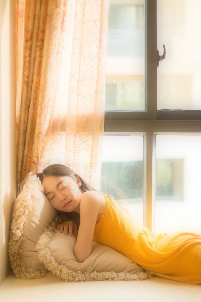 夏日午后黄裙美女躺在床上慵懒惬意