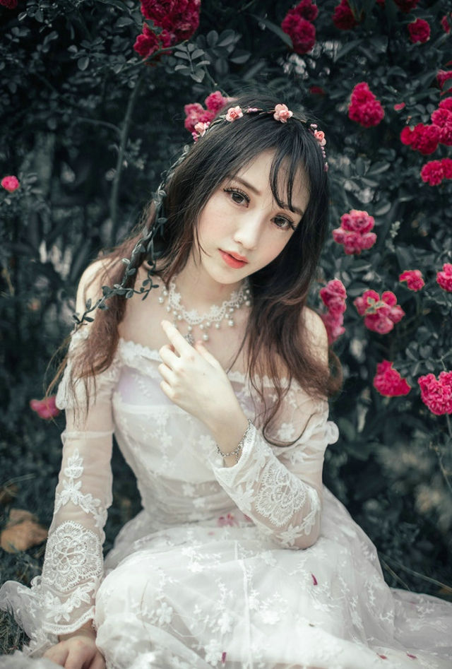 清新唯美裸肩蕾丝长裙花丛写真娇媚身姿风情无限-套图吧