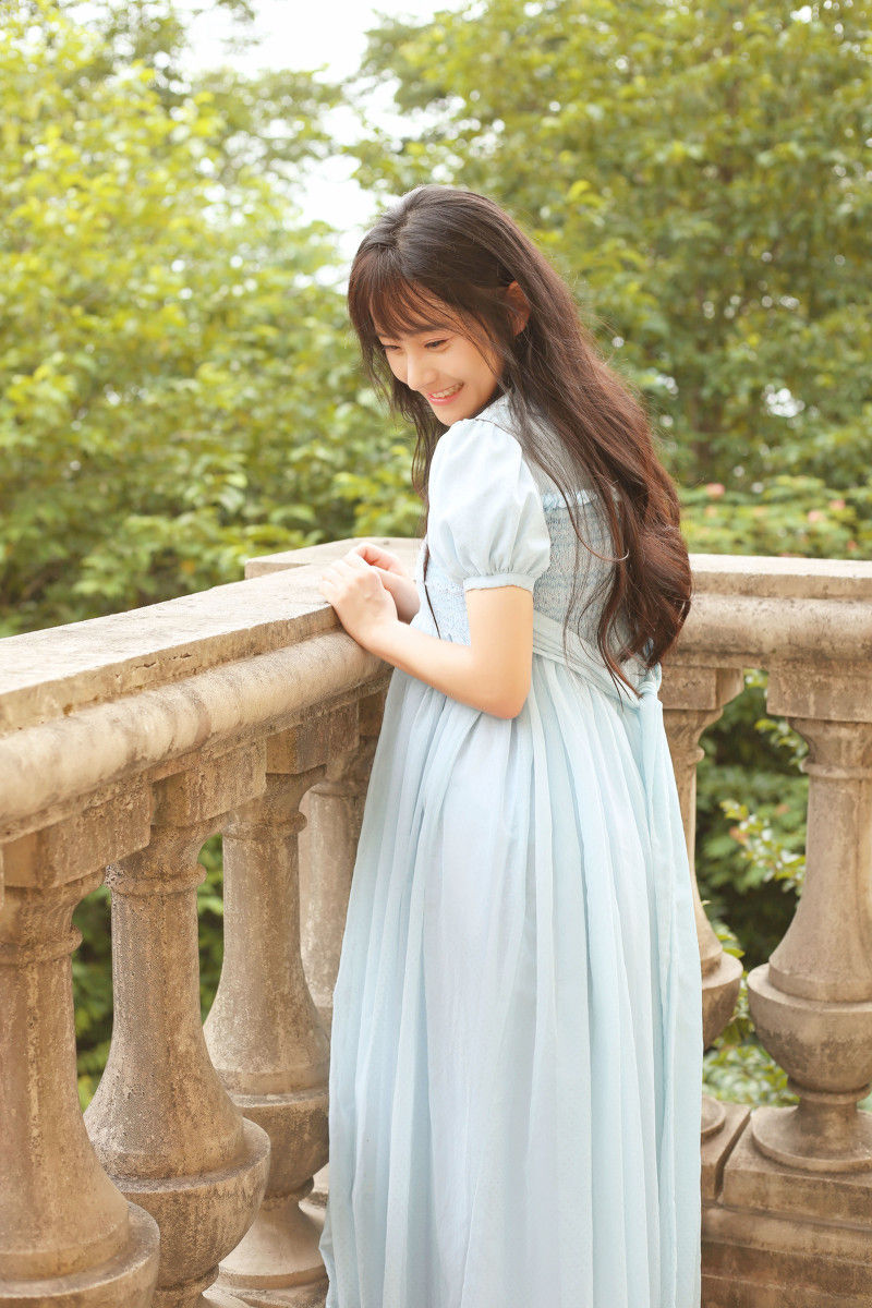 大眼刘海美女粉色连衣裙清新活力阳光写真