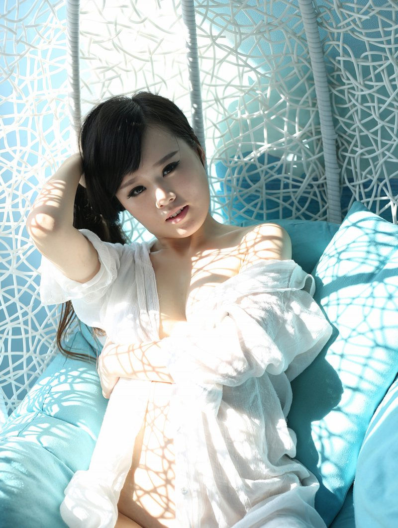 阳光浴下的大胸少女喵喵cyann白色睡衣香肩半露-套图吧