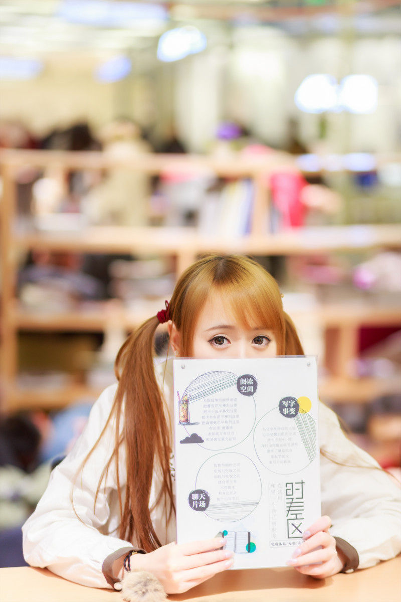 图书馆里的双马尾萝莉金发女孩靓丽写真