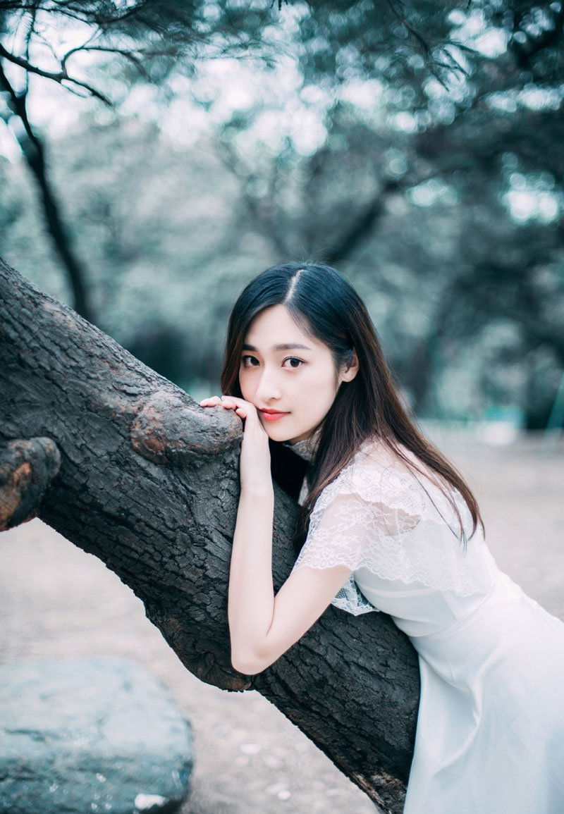 清纯mm公园里白色蕾丝公主裙唯美气质写真
