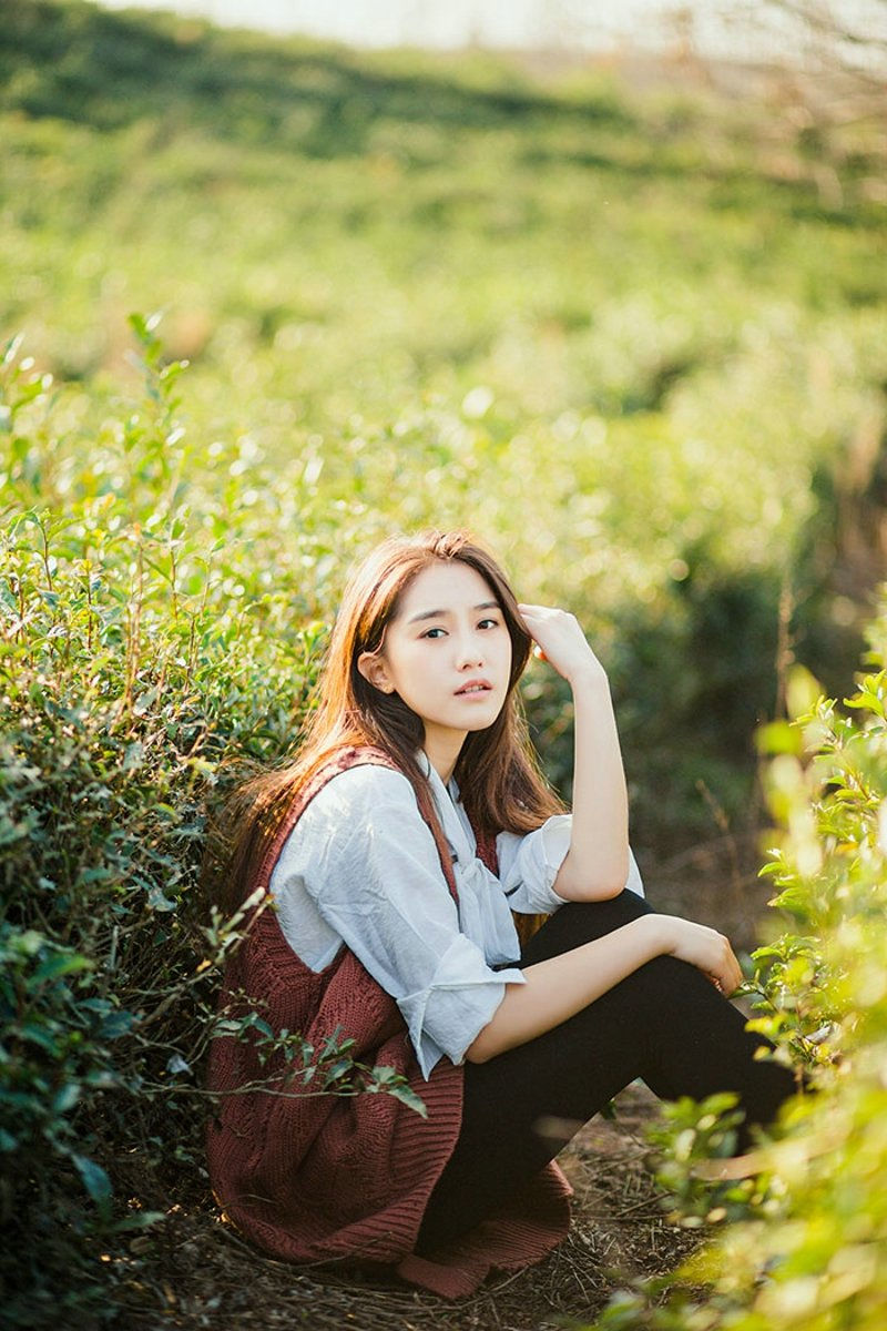 黄昏下高颜值美女花丛中长发飘逸气质写真-套图吧