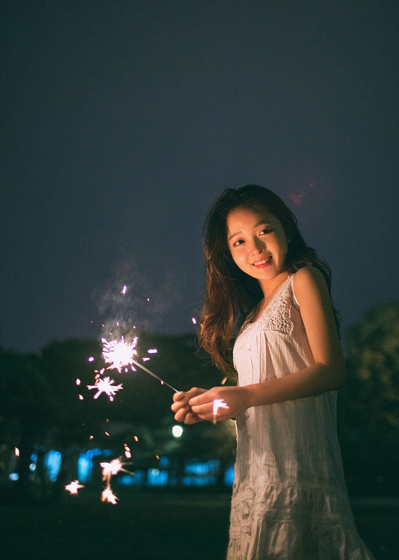 夜色天空下海边烟火少女甜美动人写真-套图吧