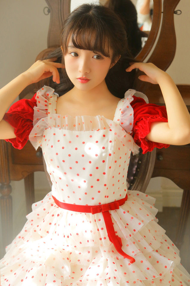 纯净亮眼少女圆点红裙优雅娇俏微微一笑太迷人-套图吧