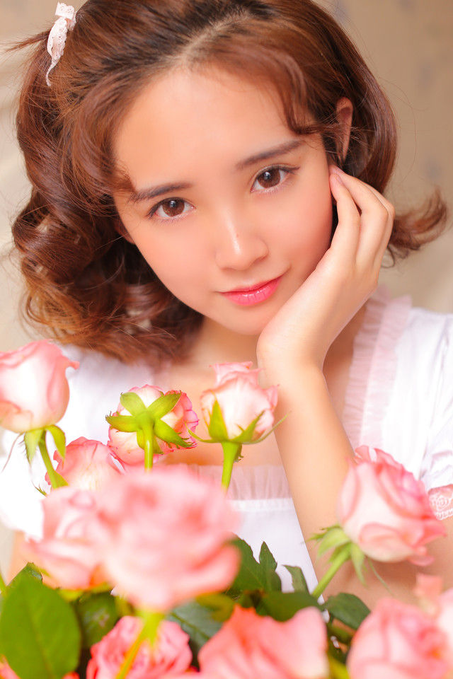 玫瑰卷发少女粉嫩裙床上眯眼萌到爆-套图吧