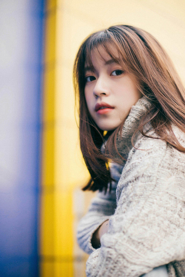 大眼美少女高领毛衣显温柔与知性露纯美笑脸-套图吧