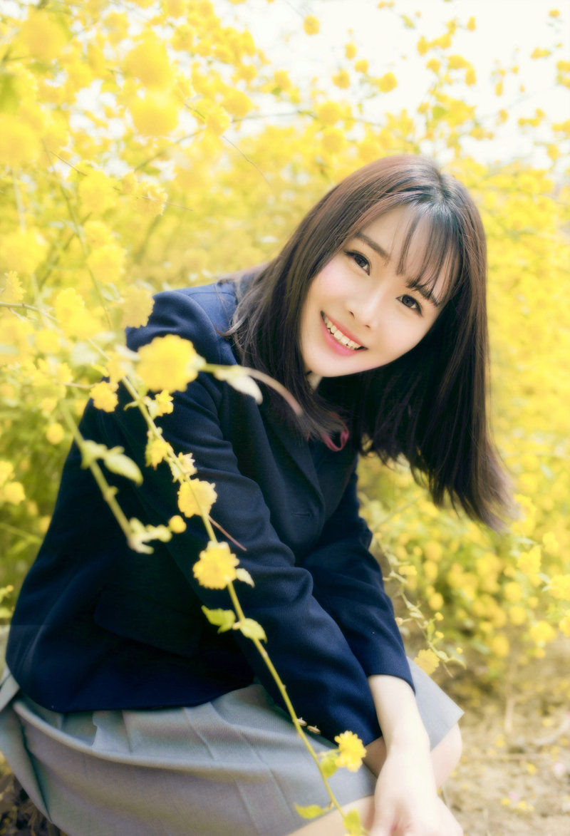 美女校花公园花丛中学生装乖巧可爱-套图吧