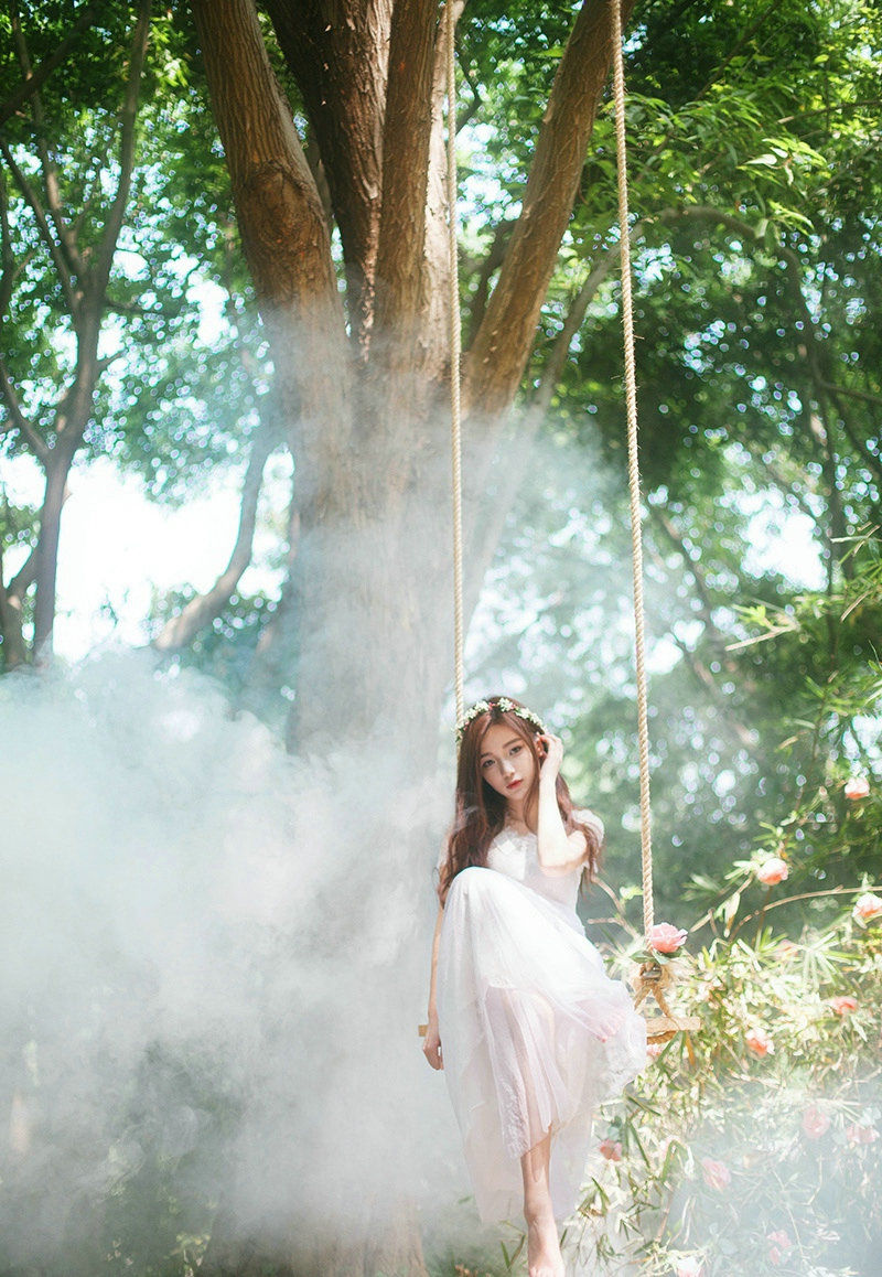 花环美女森林里烟雾缭绕宛如仙女下凡-套图吧