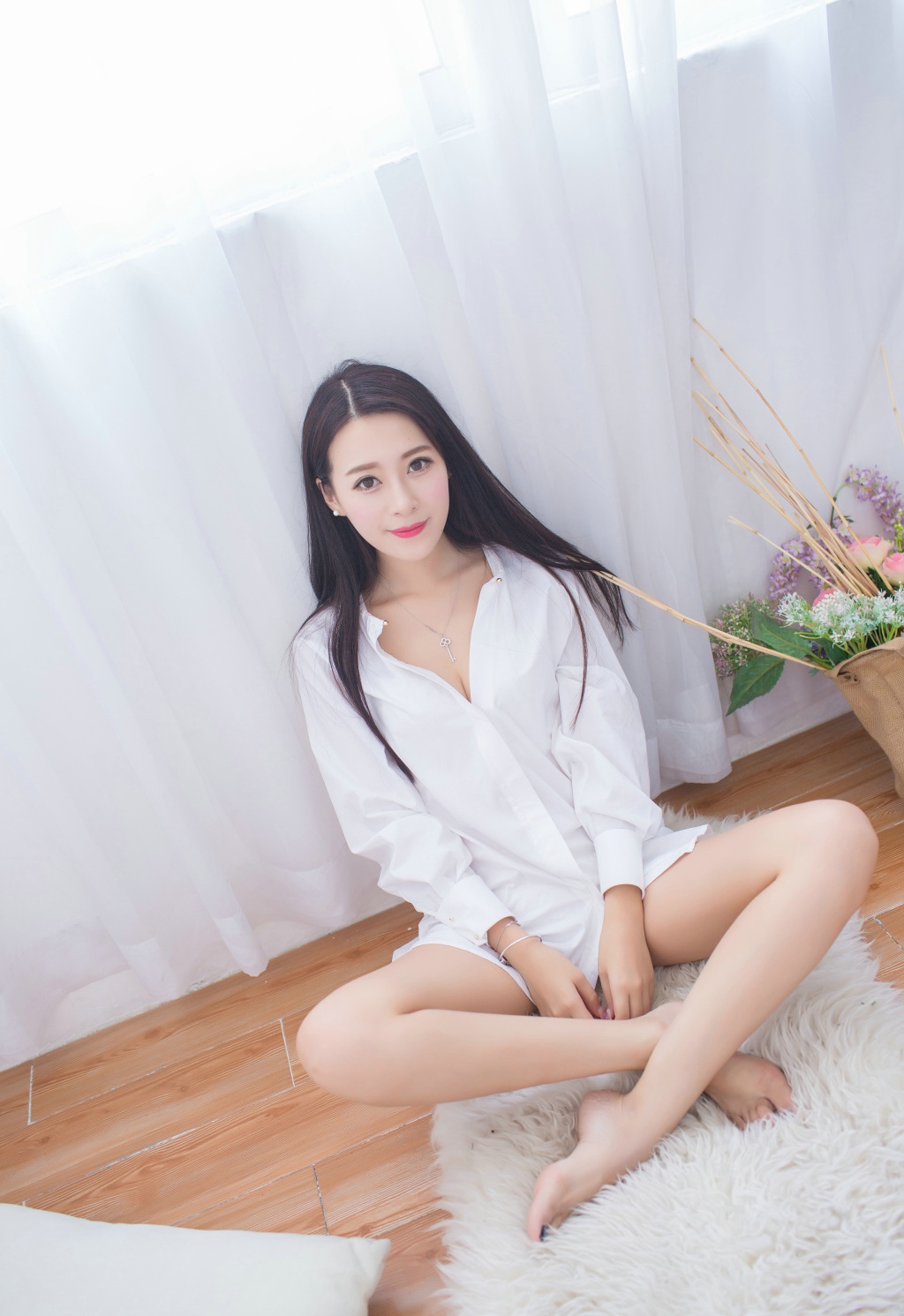 中分长发美腿美女白衬衣秀气质写真