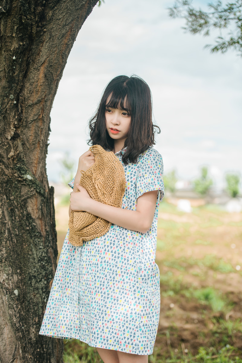 碎花裙短发女孩阳光草帽温馨可人-套图吧