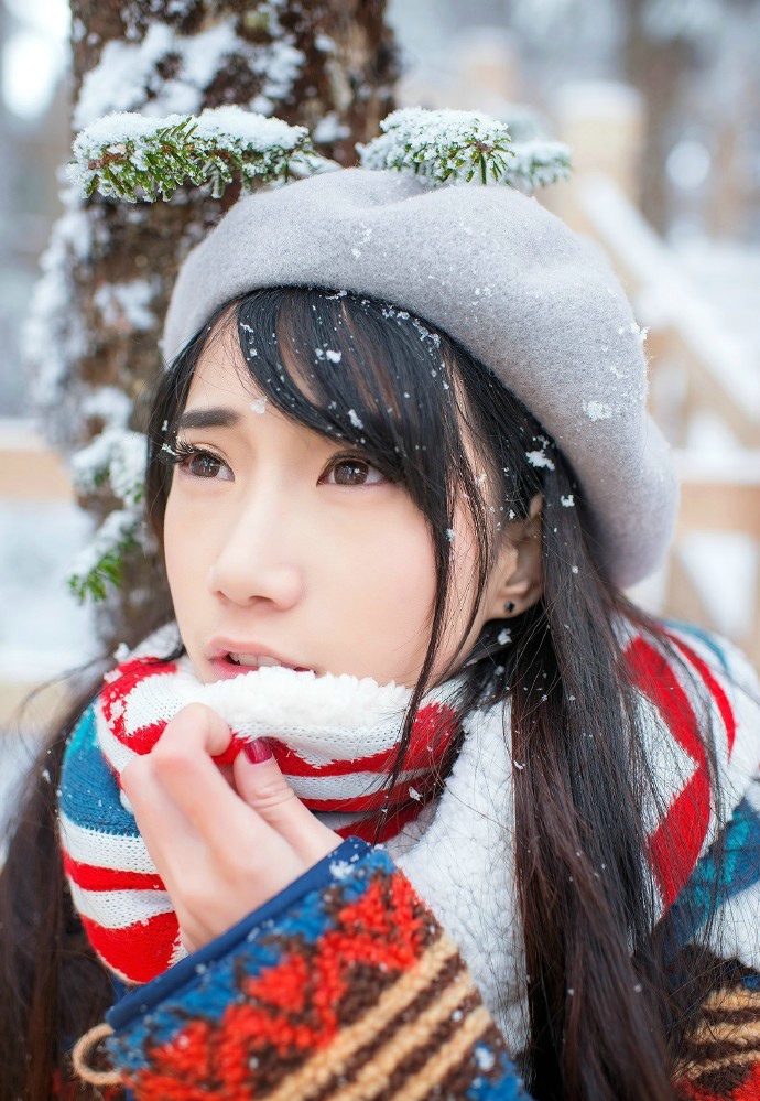 冬季甜美白皙少女清新郊外写真养眼可人