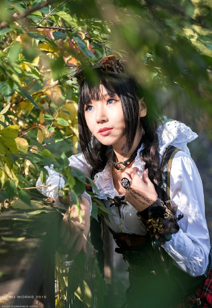 甜美少女卷发美瞳麻花辫阳光户外清新写真-套图吧