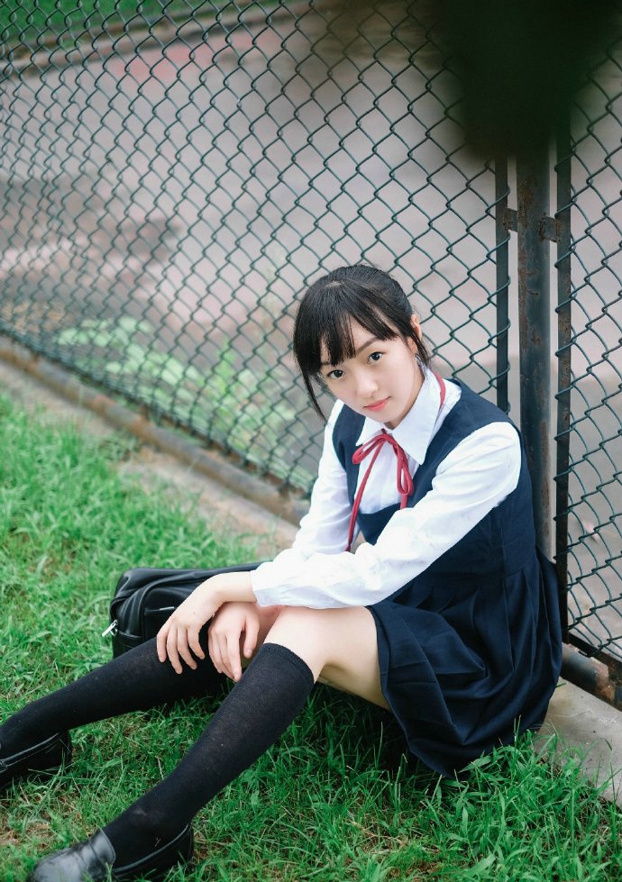 毕业季的清新单马尾制服少女宁静阳光写真-套图吧