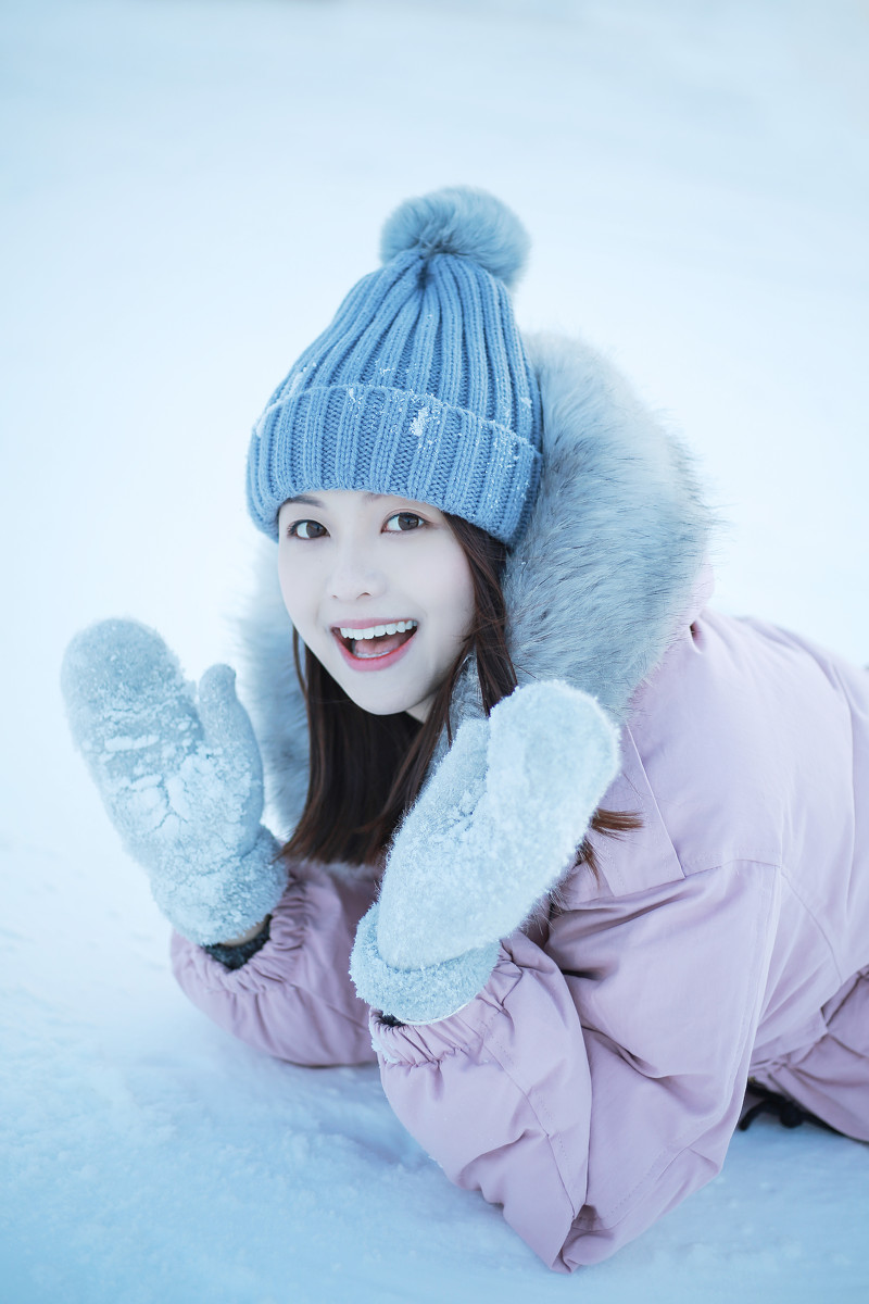漂亮素颜美女雪景迷人温馨白皙写真