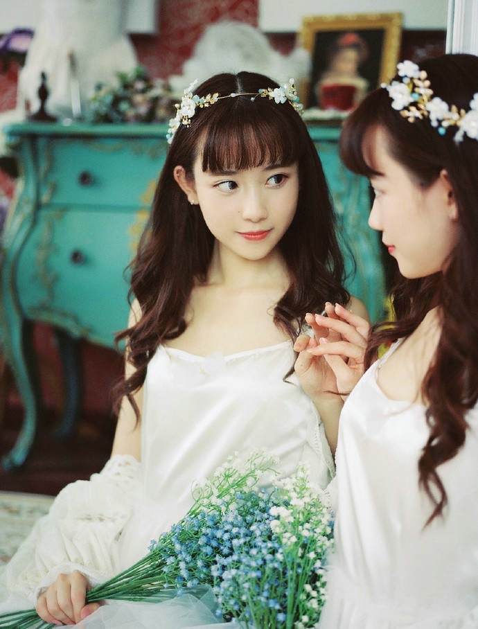 清新白色连衣裙少女迷人薄纱甜美鞋子