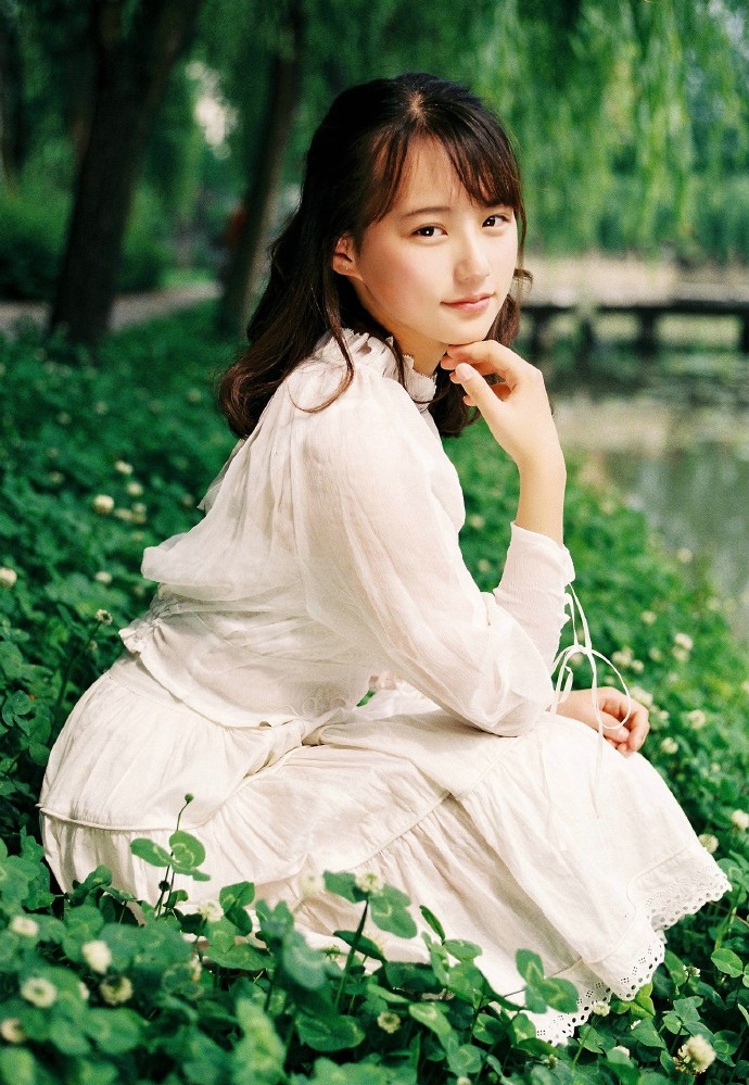 邻家小妹白色甜美连衣裙清新活力户外写真