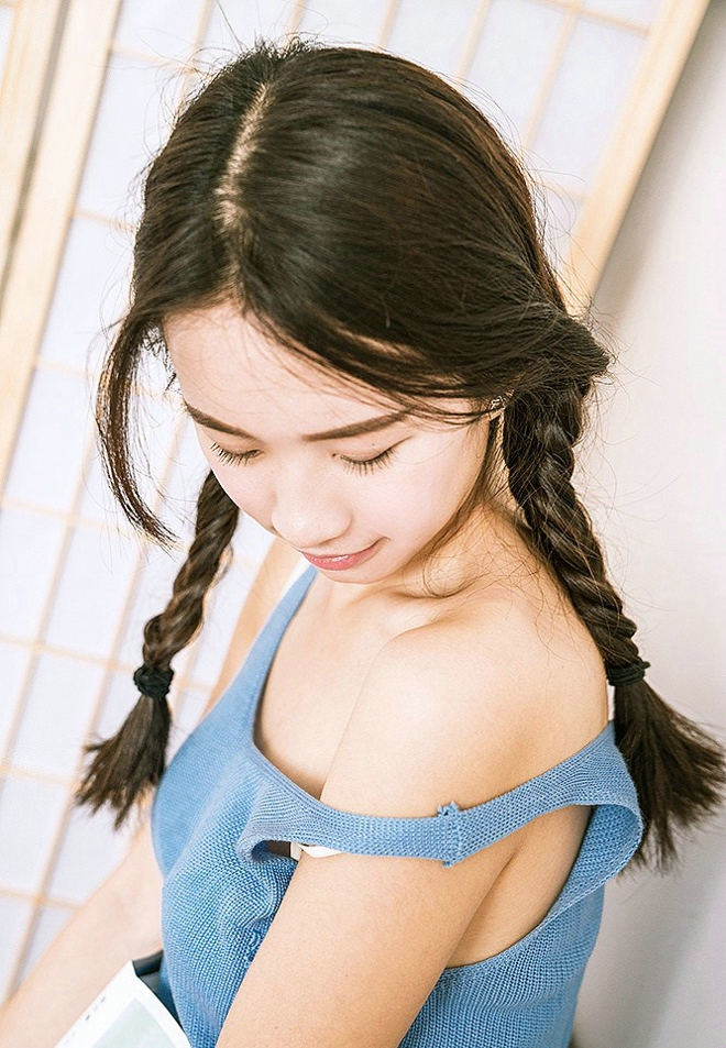 清纯娇嫩俏皮麻花辫调皮小女孩阳光可爱唯美书房写真-套图吧