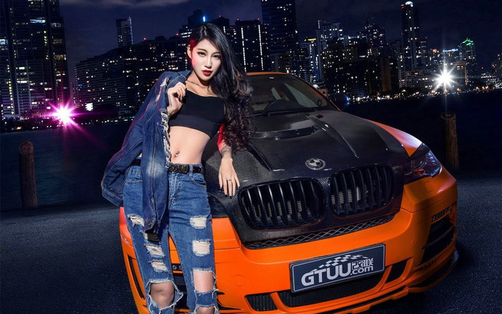 改装车娇艳美女车模户外性感魅惑写真