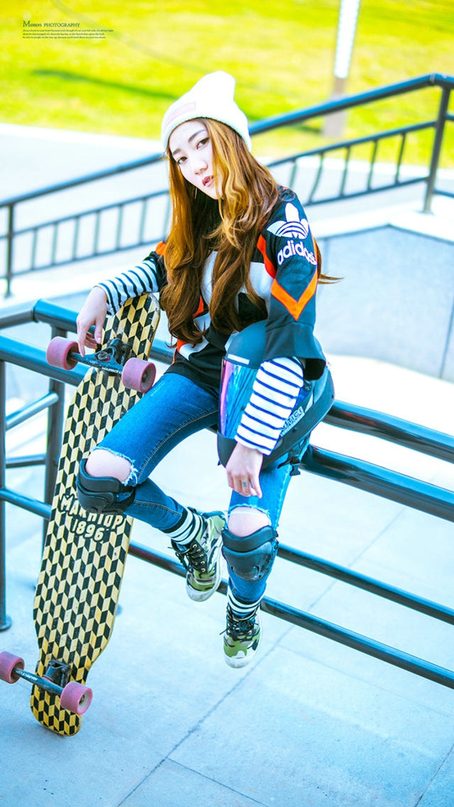 户外滑板女神冷艳耍酷摆拍不停-套图吧