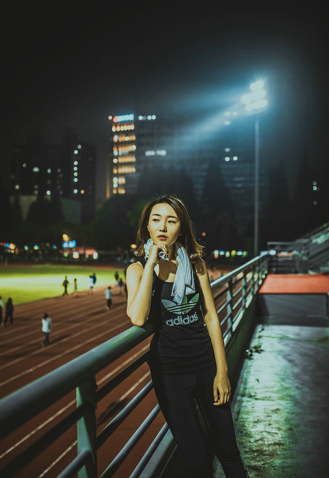 夜晚校园内的跑步美女运动装大汗淋漓-套图吧