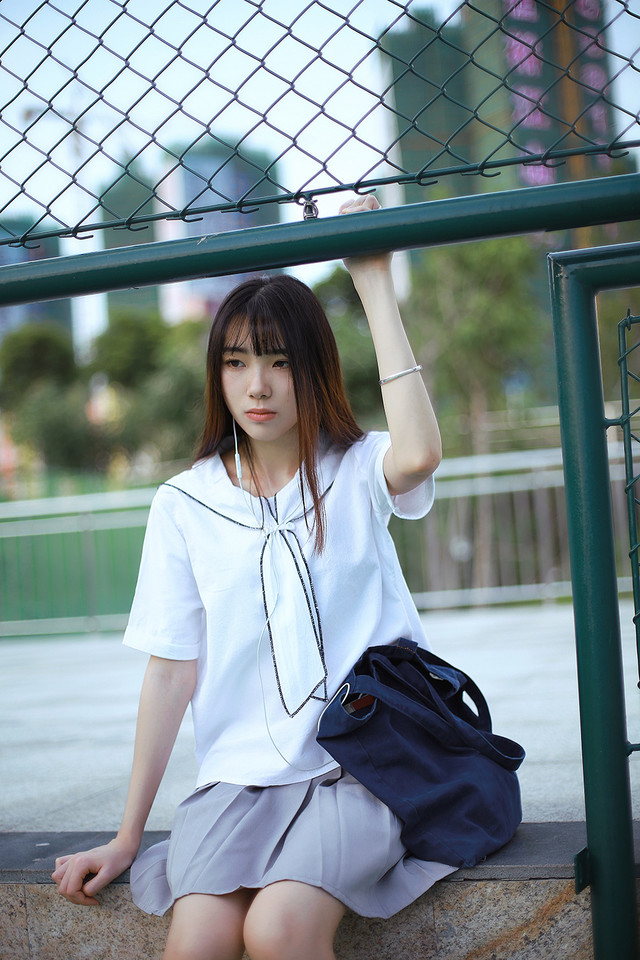 篮球场上的学生装妹子水灵秀气-套图吧