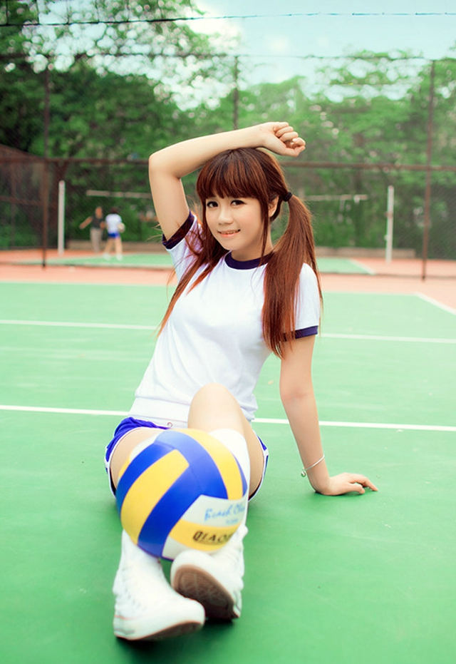 双马尾少女操场上踢足球眨眼卖萌可爱-套图吧