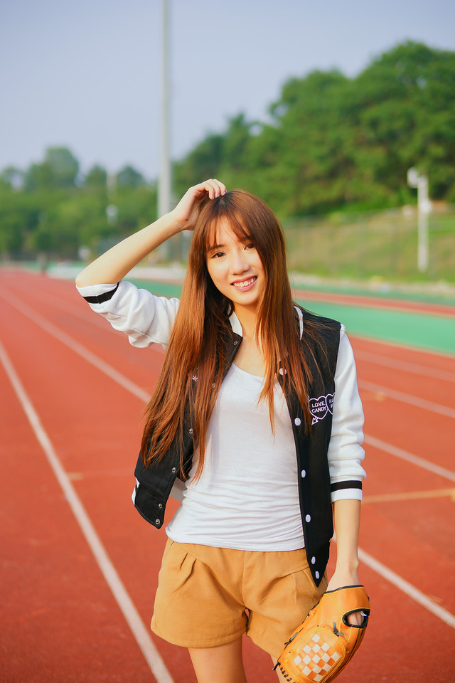 阳光下操场上的棒球美女笑容迷人-套图吧