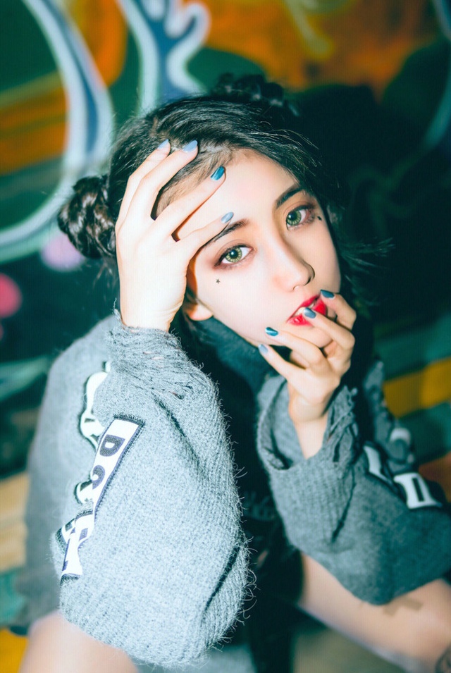 夜晚涂鸦墙前哪吒头少女挥舞棒球干纹身抢眼-套图吧