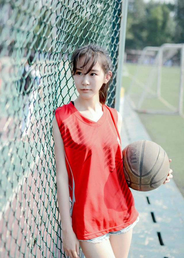 篮球场上的马尾少女盘腿而坐大汗淋漓-套图吧