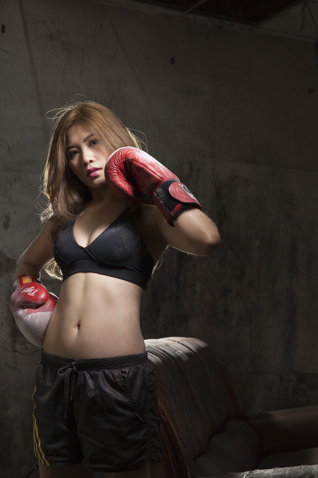 昏暗私房内的丰满圆润拳击美女坐姿霸气