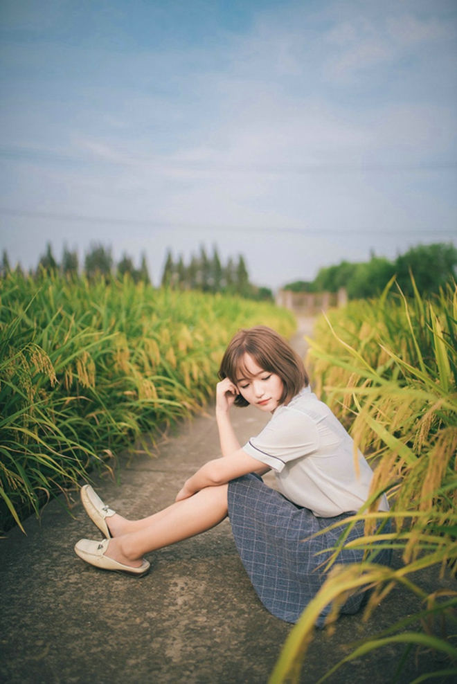 清纯短发薄纱上衣女孩稻田阳光俏皮诱人清新唯美写真-套图吧