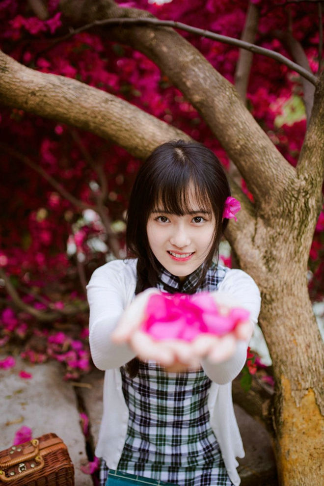 花树下清纯粉嫩文艺复古少女温婉柔美秀气阳光唯美写真-套图吧